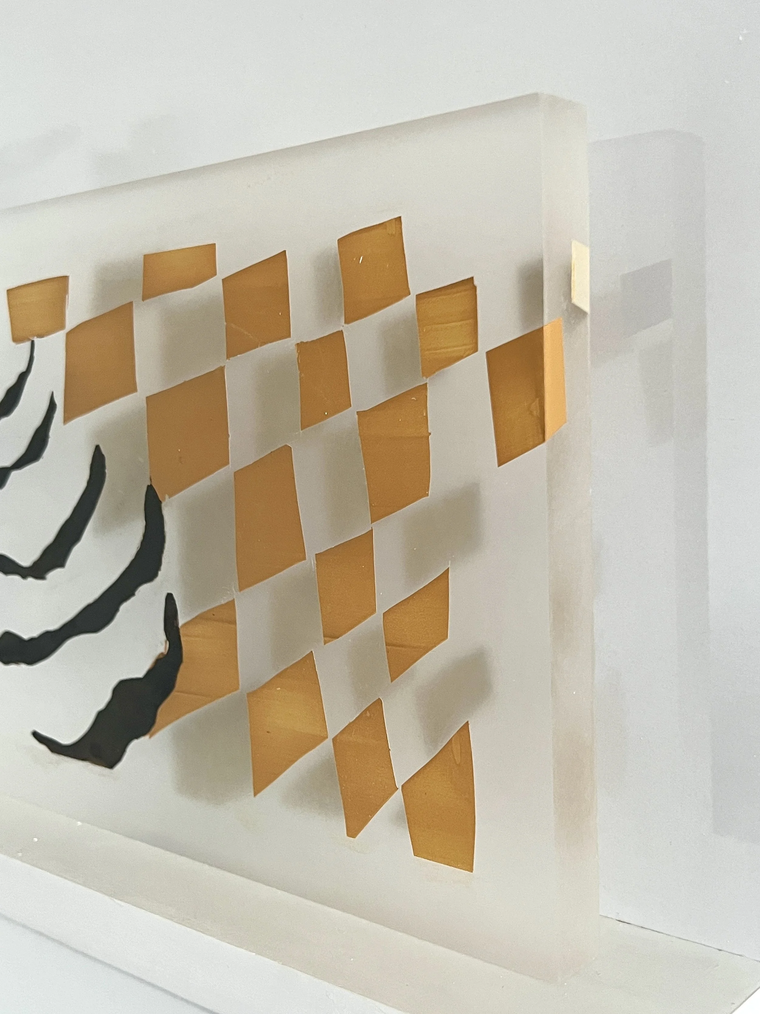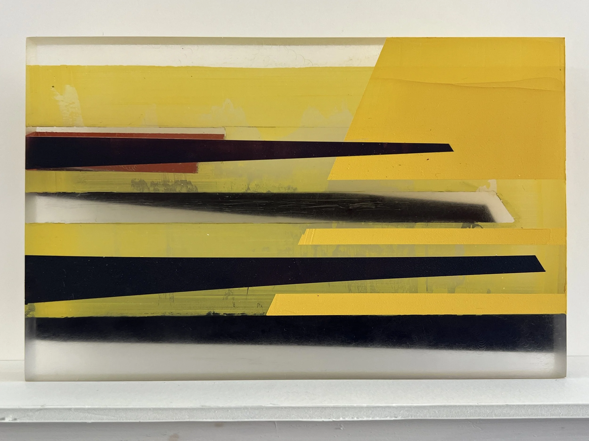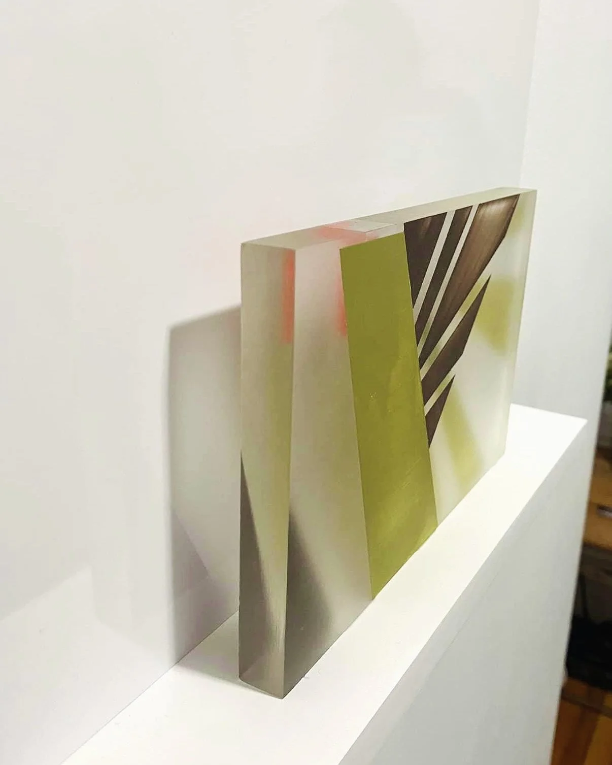 Green Heron (edge detail) - 2024, acrylic on cast acrylic panel, 12.25 x 7.25 x .75 inches