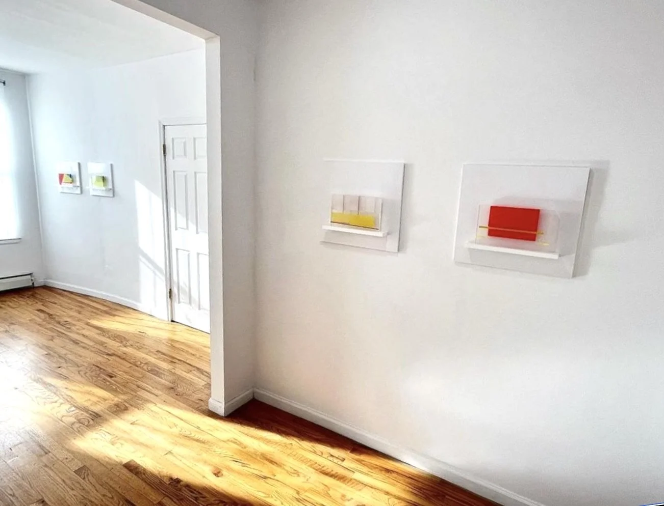 During this time of getting to know the bird, I decide on three distinct plumage colors to represent it. These colors are then mixed using digital tools to create accurate color representations avoiding any personal color preferences. Drawing inspiration from my experiences as a novice birdwatcher and aiming to evoke a similar experience for the viewer, I apply colors to the acrylic panels to manipulate visibility as the viewer moves, challenging spatial expectations. For example: a color you see from a side angle may not be visible from a frontal view. The artwork is enlivened by the viewer’s motion. The unpainted areas on the panels suggest the open air where these birds thrive.